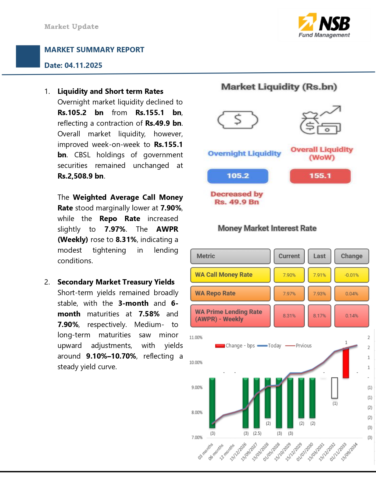 The market summary report as per 04.11.2025 is as follows. Click here to download the PDF version of the report.