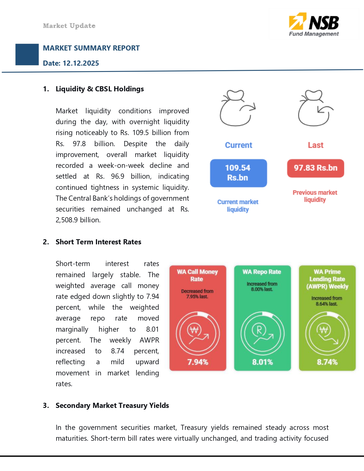 The market summary report as per 12.12.2025 is as follows. Click here to download the PDF version of the report.