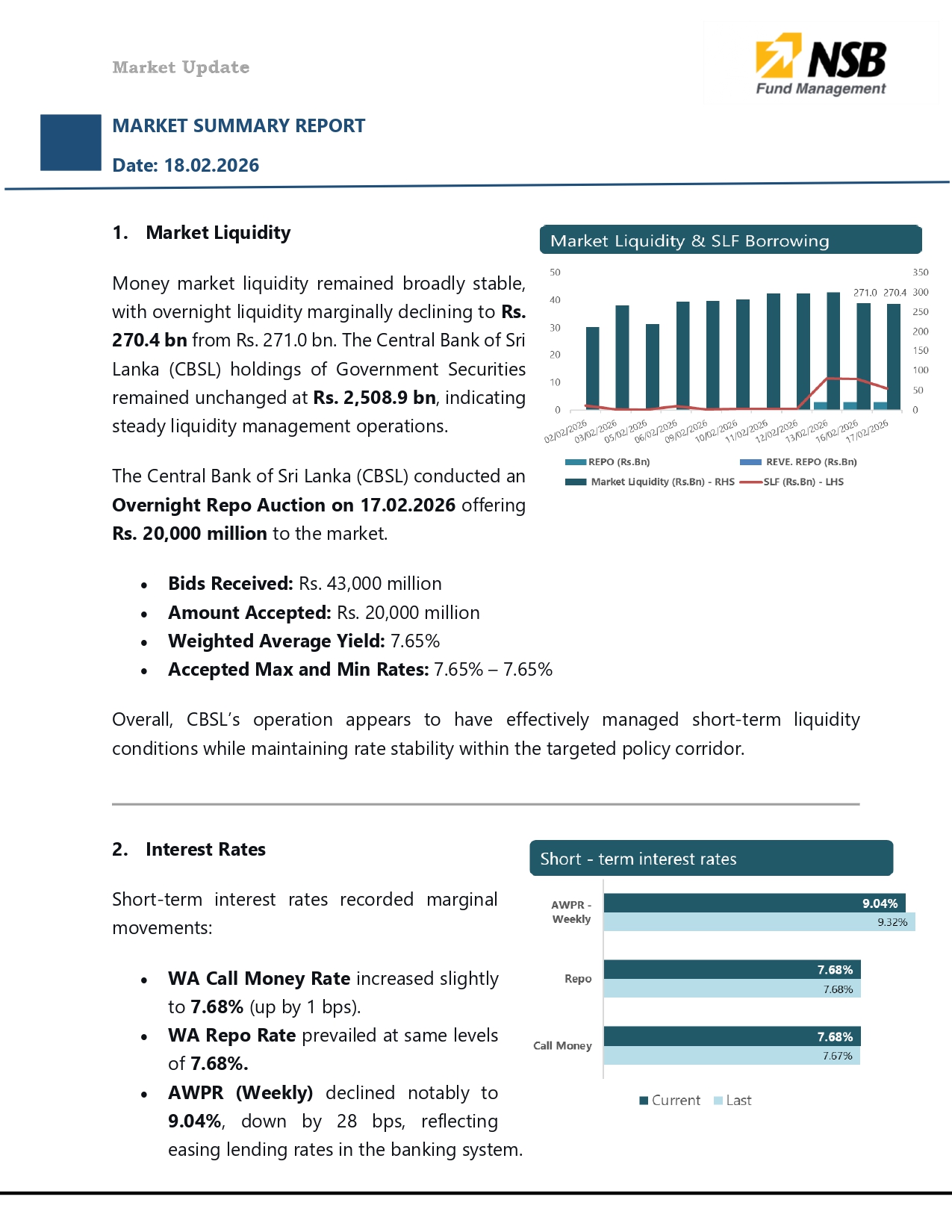 The market summary report as per 18.02.2026 is as follows. Click here to download the PDF version of the report.